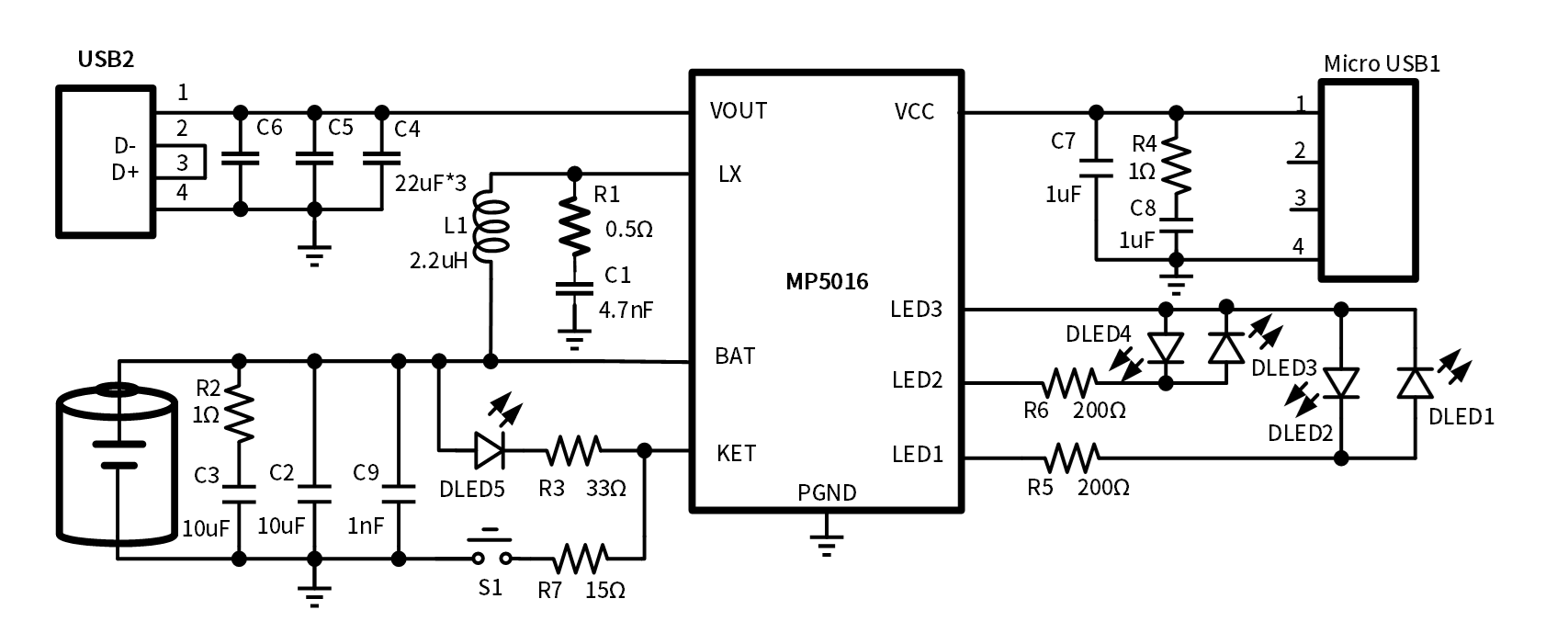 MP5016 is a power bank solution device which is highly integrated with switchcharger, LED display cell and synchronous boost output.