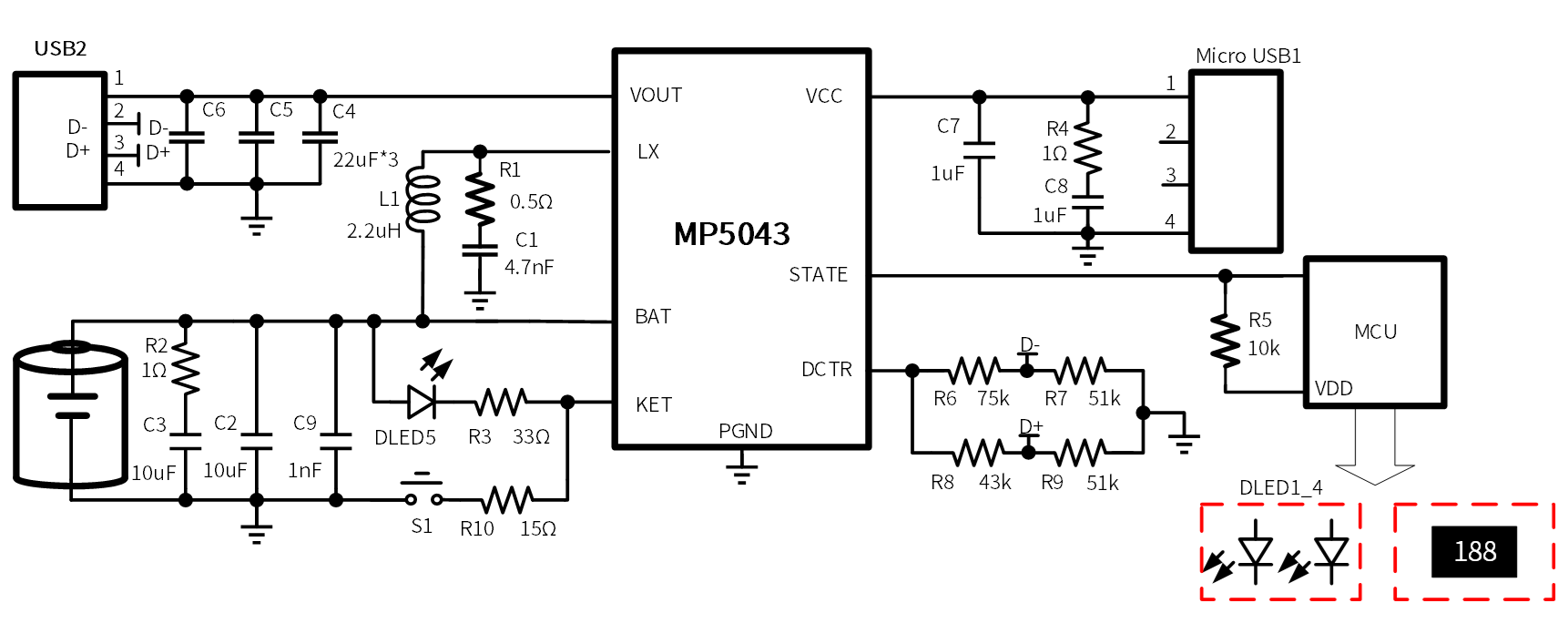MP5043 is a power bank solution device which is highly integrated with switchcharger and synchronous boost output.