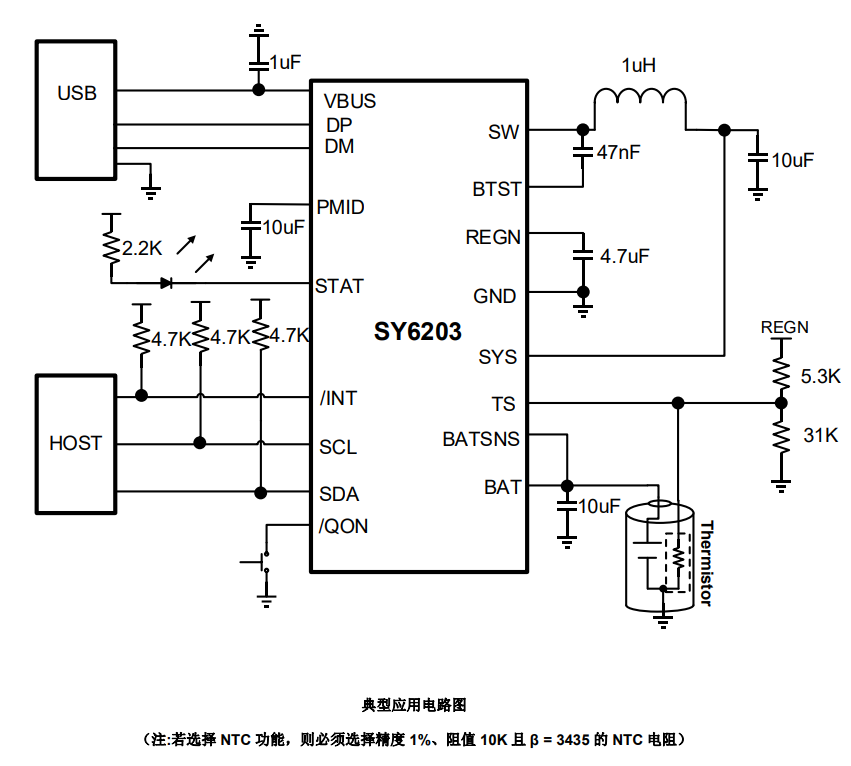 SY6203是一款通用的低功耗高精度的NVDC架構(gòu)switch charger,適合于無線耳機(jī)/智能手表等便攜穿戴電池設(shè)備。芯片內(nèi)部集成充電模塊和boost升壓模塊,并包含了完善的保護(hù)功能。SY6203支持最大3A充電電流,并且支持電池 線損補(bǔ)償。 SY6203可通過I2C通信接口靈活配置充電參數(shù), 可以以10mV步進(jìn)調(diào)節(jié)恒壓充電電壓,60mA步進(jìn)調(diào) 節(jié)恒流充電電流。SY6203集成了比較完善的電池保護(hù)功能,包括 JEITA充電規(guī)范支持,充電超時,電池過壓/過流/欠 壓保護(hù)。SY6203集成1.2A輸出能力的OTG功能,可提供反向電壓給外部設(shè)備供電。芯片支持BC1.2檢測, 能夠根據(jù)5V USB輸入類型實(shí)現(xiàn)自動限流設(shè)置。SY6203采用的封裝形式為4mm*4mm QFN24和2.07mm*2.17mm CSP25 (0.4mm pitch)。